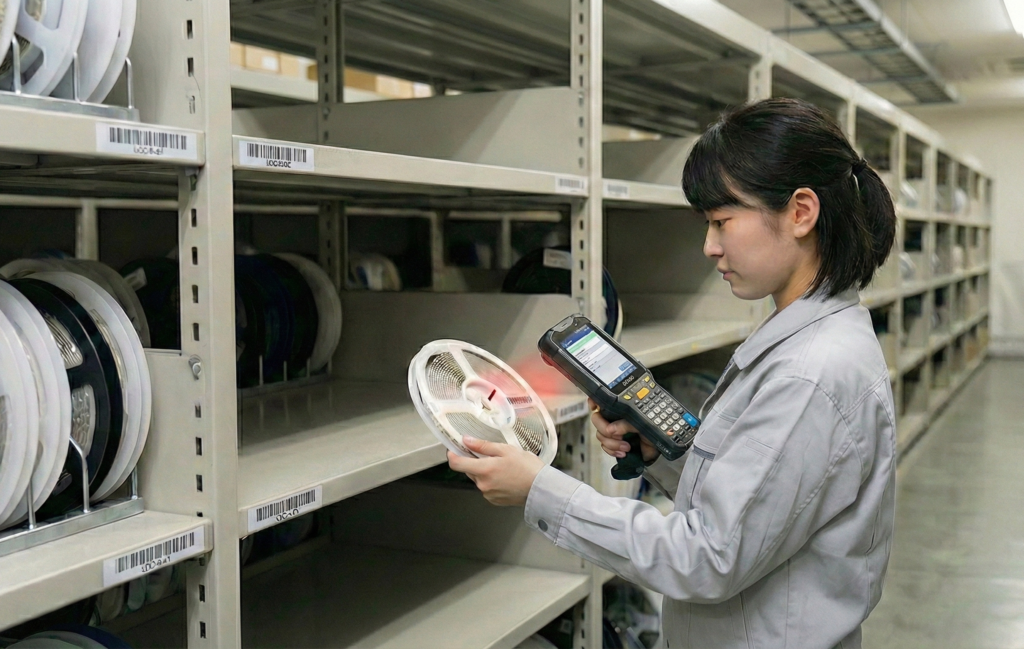 システム導入前に5名で行っていた入出庫作業が3名でできるようになりました。バーコードで棚と電子部品を紐づけることで、必要な電子部品をどこへ入庫すればよいのかすぐに分かります。又、製品の電子部品を基板に実装するときに、製品のBOM(製品の部品構成リスト)から複数の部品を複数の棚から払い出すことが簡単にできます。