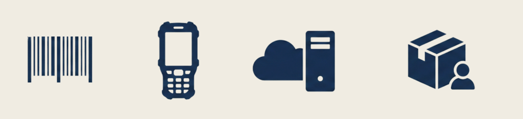 現場レベルでの「どの棚の、どの箱に、使いかけのリール部品がいくつあるか」という電子部品在庫の「宝探し」をバーコードとAndroidハンディーターミナルでスマートに解決します。在庫管理のデータや入出庫の操作履歴は「パールズサーバ」が一括して管理します。
